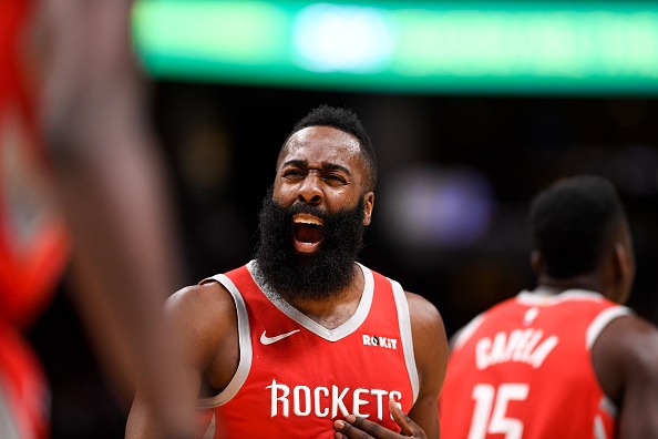 DENVER, CO - NOVEMBER 13: James Harden (13) of the Houston Rockets has words for the referee during the first half against the Denver Nuggets on Monday, November 13, 2018. The Denver Nuggets hosted the Houston Rockets at the Pepsi Center. (Photo by AAron Ontiveroz/The Denver Post via Getty Images)